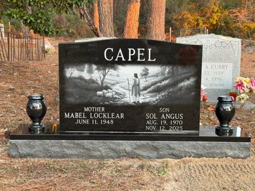 Naturally, the kind of stone you choose to have the memorial carved from is a major consideration. The most commonly used granite in the Southeast is Georgia Gray granite. Georgia Gray granite is the least expensive granite that is used for memorials. Expect anywhere from 50-100% markup for other colors of stone--and there are lots of them. We recommend granite over any other material for a memorial. Granite has proven its merit over time and will endure a great deal longer than any bronze or marble. If you have ever seen a marble memorial from the early part of the 20th century, you probably noticed how difficult it is to read smaller letters on the marker. This is usually not a problem in workmanship, but instead in the material. Generally speaking, marble markers more than 75 years old show significant deterioration. Granite is a much harder material than marble and WILL NOT show any significant deterioration for several hundred years.